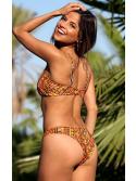 Parisian Tonga - The Parisian Tonga will have you feeling like you are on the Coast in the South of France. So Pretty and so European in style! The Tribal Mali print is unique and wild. The top is made with blind rubber edges a removable band between the bust adjustable over the shoulder straps and hooks at the back. The Vee bottoms in our Tonga style coverage in back to show off your rear and rises high on the sides with full front V coverage keeping you looking slender and shapely! This style is part of our Easee Fit Collection and is so comfortable. You will want more in other colors! - Made For You in Our Factories.