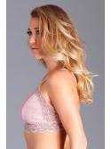 Crop top style soft cup bra with lace fabric and lined front cups.