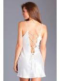1PC satin chemise with tie up detailing at the back with floral lace overlay on neckline with strapping details at the front.