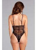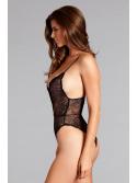 All over lace teddy with scalloped edge around plunging neckline and high cut legs.