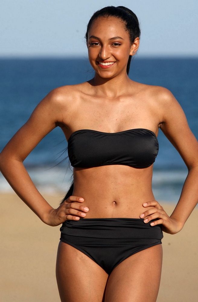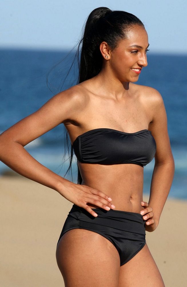 Banded Collection - Striking Rio Bikini is the best suit to catch the sun! The black matte is all about the classics in this heart shaped bust line bandeau with optional self adjustable neck support and supportive stays on each side. Anyone can wear a bandeau top because of our unique and original design. The high cut leg Rio bottom will have you looking trim and has an adjustable long band to fit the perfect coverage low on your hips or high on your waist. The Bandeau Banded Rio is an original design by and great for long waisted bodies. - Made For You in Our Factories.