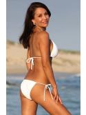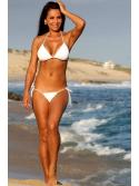 This skimpy little bikini in White Lycra has just the right amount of coverage to show off your body without showing too much! Basic triangle top (ties at neck and back) and itsy bitsy bottoms (ties on both sides of hip) are the perfect combination that tie everywhere for the perfect fit! Great for the sun lounger or walking the beach with that special someone! Comes in these colors black White red and royal. - Made For You in Our Factories.