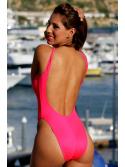 - Scoop neckline Mesh sheer deep plunge Wide straps High cut legs Scooped back Crotch lining Matte Watermelon Nylon/Lycra fabric Watermelon Mesh fabric This high cut One Piece has a shorter torso length. We suggest ordering one size up.